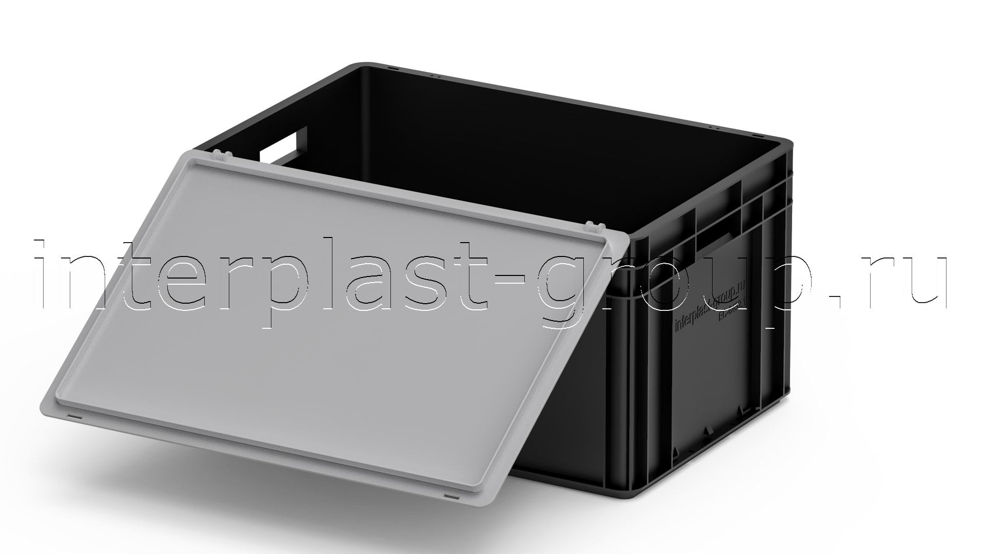 Евроконтейнер открытые ручки/сплошное дно (черный), 600x400x320 мм