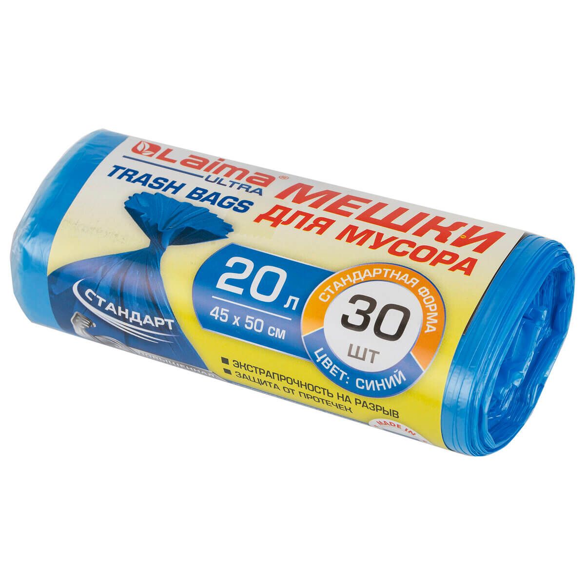 Мешки для мусора 20 л, синие, в рулоне 30 шт., ПНД, 8 мкм, 500х450 мм, LAIMA, 607682 в Старом Осколе
