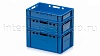 Контейнер изготовлен из первичного полиэтилена и рассчитан на интенсивную эксплуатацию. Возможность повторного использования делает его экономичным решением в сегменте многооборотная тара, а голубой цвет способствует визуальной систематизации продукции и упрощает контроль складских процессов.