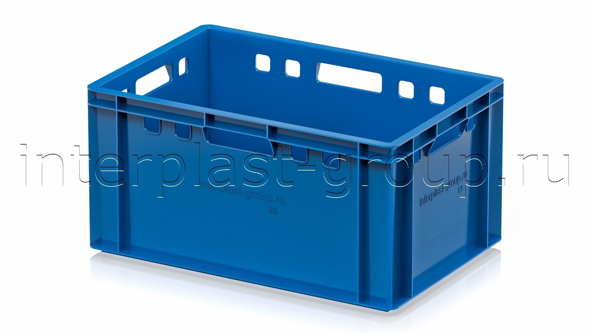 Ящик для мяса Е3 это третий по размеру в линейке мясных ящиков. Разработан специально для использования в мясной промышленности. Отлично штабелируется и собирается в единый сет со всеми ящиками серии. Изготовлен из первичного полиэтилена, и адаптирован для хранения в холодильных и морозильных камерах.