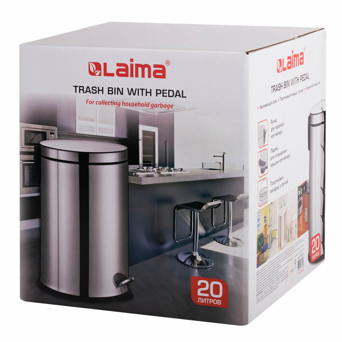 Его вместительность составляет 20 литров, что делает его отличным выбором для помещений с большой проходимостью. Оборудовано удобной педалью для открывания, которая обеспечивает легкий доступ, а плотно прилегающая крышка надежно предотвращает распространение неприятных запахов.